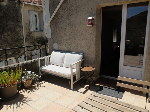étage privatisé dans maison de village, Chambre, coin Salon, salle de bain, WC