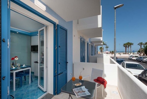 Dans l'espace nuit, lit double avec matelas à mémoire de forme, kitchenette confortable et fonctionnelle avec plaques à induction et réfrigérateur. Salle de bain avec douche, climatisation, Smart TV HD et wi-fi gratuit. Balcon au niveau de la rue avec table et chaises. Appartement également équipé de lave-linge et de détergents.