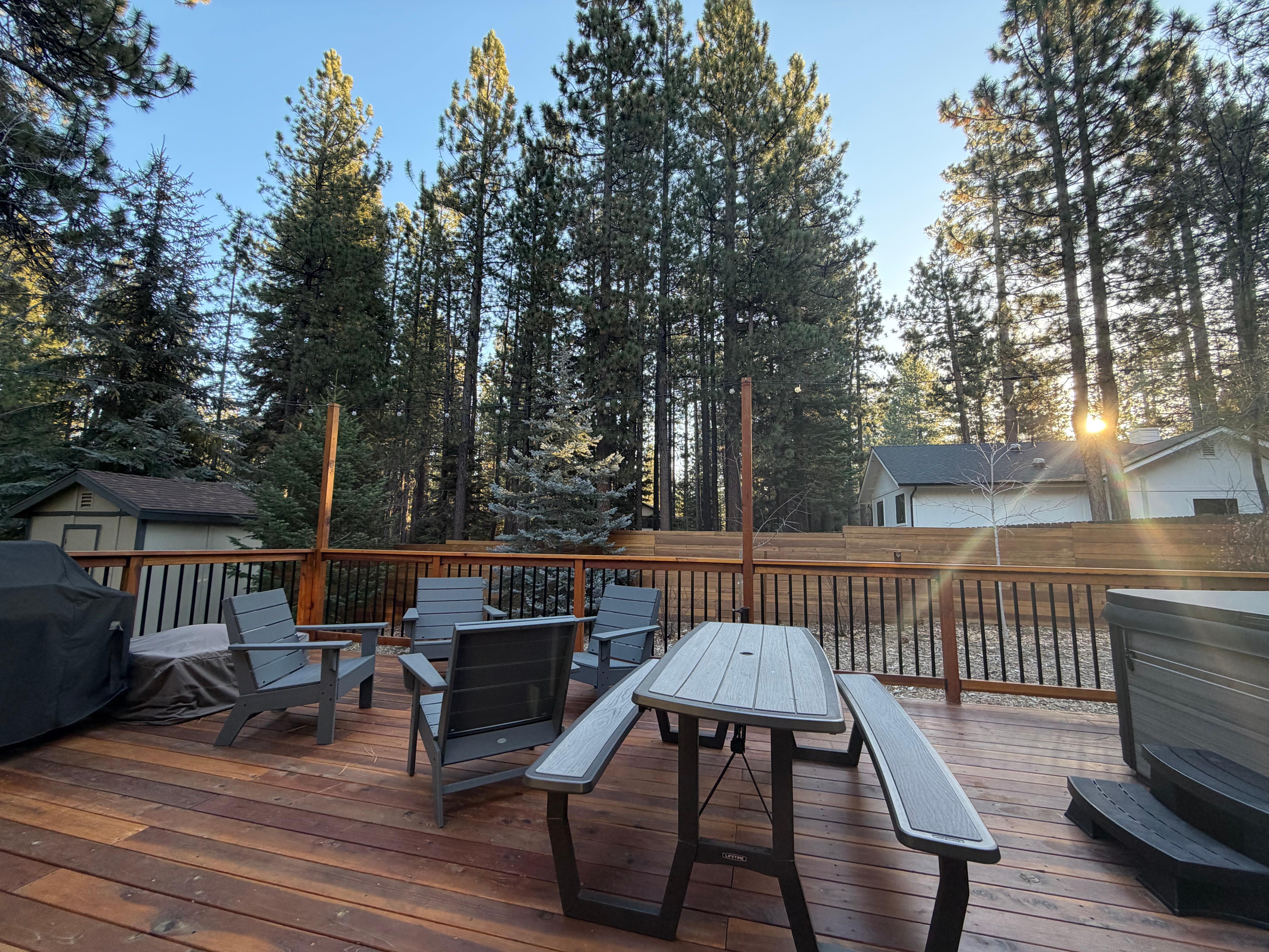The well-appointed kitchen is fully stocked with all the necessary appliances and kitchenware to prepare your favorite meals. Step outside to the fenced backyard, where you can unwind in the inviting hot tub, sizzle up delicious meals on the BBQ, and relax on the spacious deck with ample seating, allowing you to savor the refreshing mountain air.