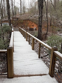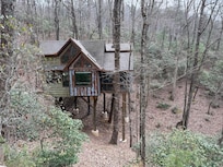 Galerie photos de lâhĂ©bergement Inn The Ravine Luxury Treehouse * bain Ă remous, cheminĂ©e, foyer, isolĂ© *