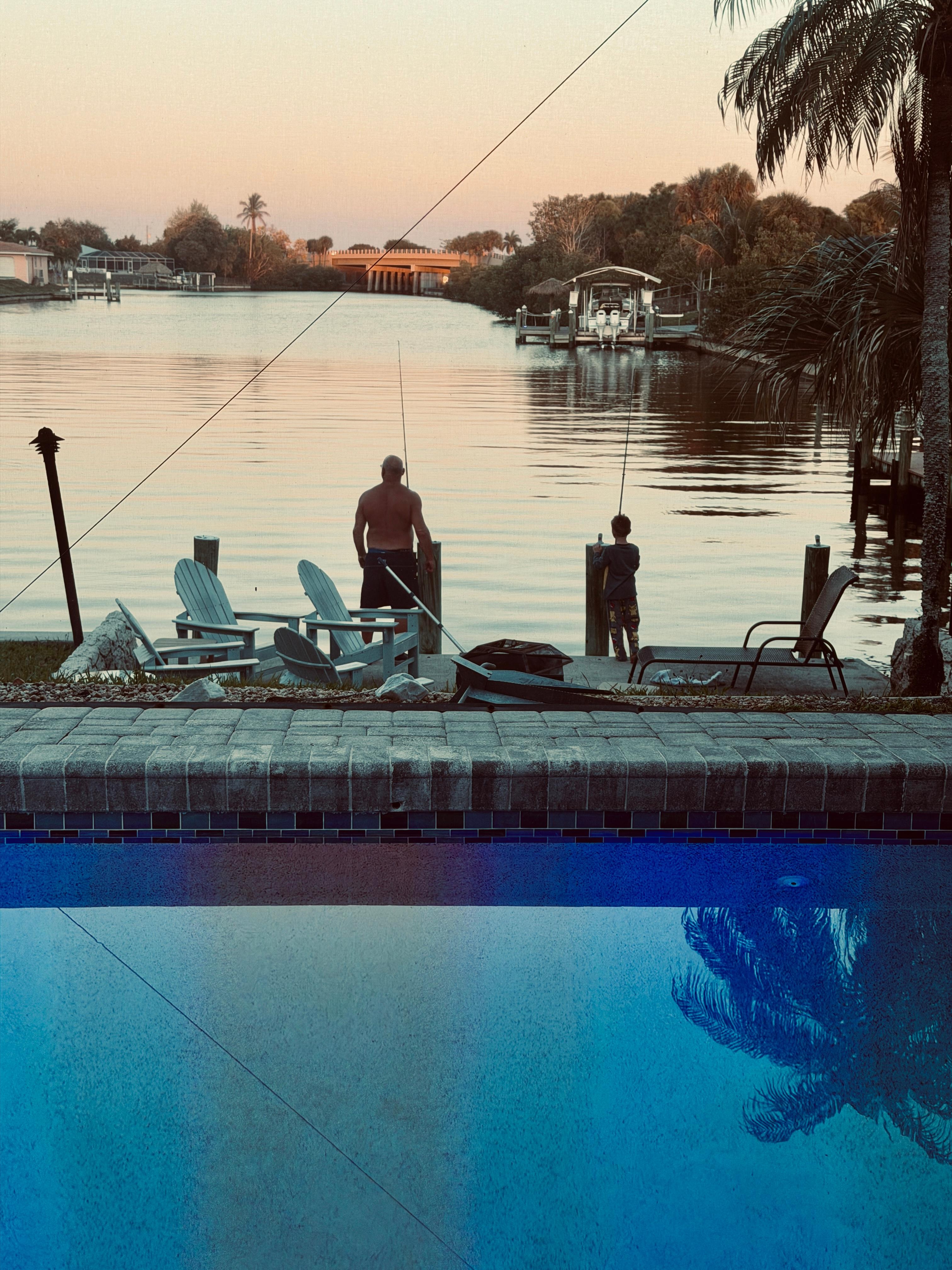 Outside on the lanai area is a gorgeous sitting area with plenty of comfortable outdoor seating including a dinner table, TV, and plenty of lighting and fans. Hang out in the screened-in heated (winter only) pool looking over the large cove and enjoy quiet shady evenings. Large cove side dock patio with seating for some night fishing. If you're lucky you may see some of the canal wildlife, perhaps a dolphin or manatee.