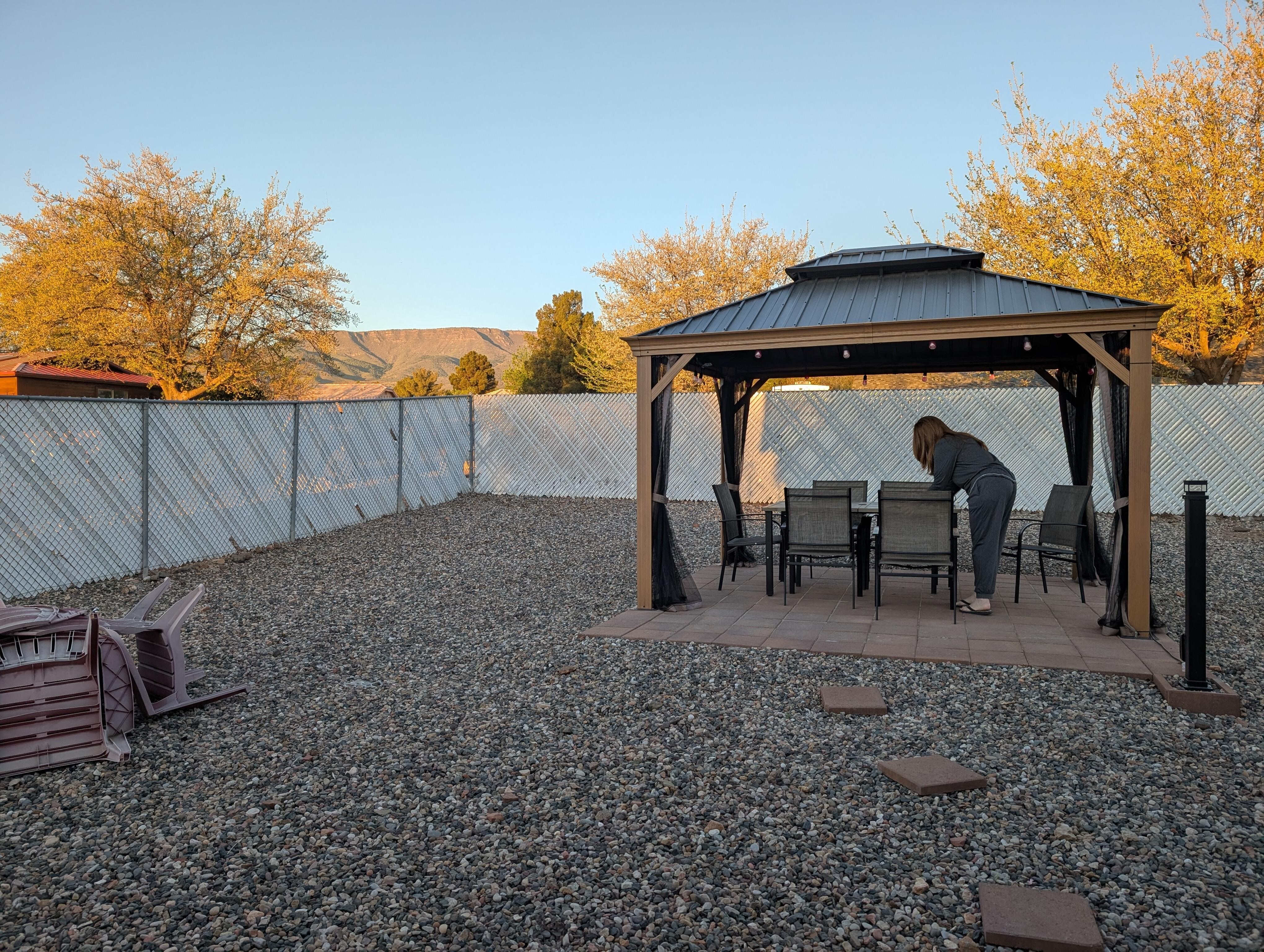 Unwind on the covered front porch or gather around the backyard firepit to roast marshmallows under the stars. Enjoy a meal with family and friends under our new shade pergola with seating for 6. We also provide a propane grill for your outdoor cooking needs. The backyard is fully fenced for privacy and safety. Planning to bring your RV? Weâve got you covered with an RV gate, RV parking space, and a convenient RV dump on site.