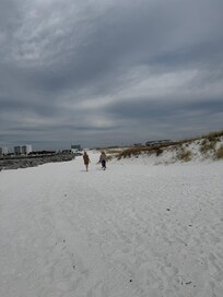 False advertisement. There is NOT a private outdoor area, even the back decks are connected from one home to the next with flimsy child gates to put up if needed.. the neighbors dog came over and peed on our deck.. the back walkway is used frequently by others as it is the only way to get to the âprivate beachâ that you are not allowed to use after you trespass through the sand dunes..approx 1/2 mi (no trespassing/ private property signs everywhere) others come from surrounding condos with a map showing them to cut through the back walkway to get to this beach. Donât leave the curtains open unless you want passerbyâs to be able to look in. The grounds need upkeep, limbs and debree everywhere. We drove down to the boardwalk and went to the beach there.. inside was nice. Living room lacks comfortable seating for more than a couple guests. Beds were comfortable. If you have small children or older adults be aware, there are a lot of stairs.. my aunt fell the first night and broke her foot. Leave the light on in the half bath on the 2nd floor, so you can see the steps better. Carpet and tile are same color so she missed a step thinking she was on the last step. The dryer vent is not hooked up, so all the hot air blew out in the hall. The outlet in the first floor bathroom doesnât work. Carpet on stairs could used cleaning. Parking is awful if you have more than one car. Only 2 allowed, must park in the garage, yet sign on door says 3 allowed.