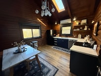 - Cabane climatisée avec une cuisine, une machine à laver et une cheminée