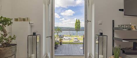 The glass parapet of the roof terrace offers a breathtaking panoramic view of the Flensburg Fjord and the sailing ships passing by, even from the sun loungers. A washing machine and a tumble dryer are available in the utility room.