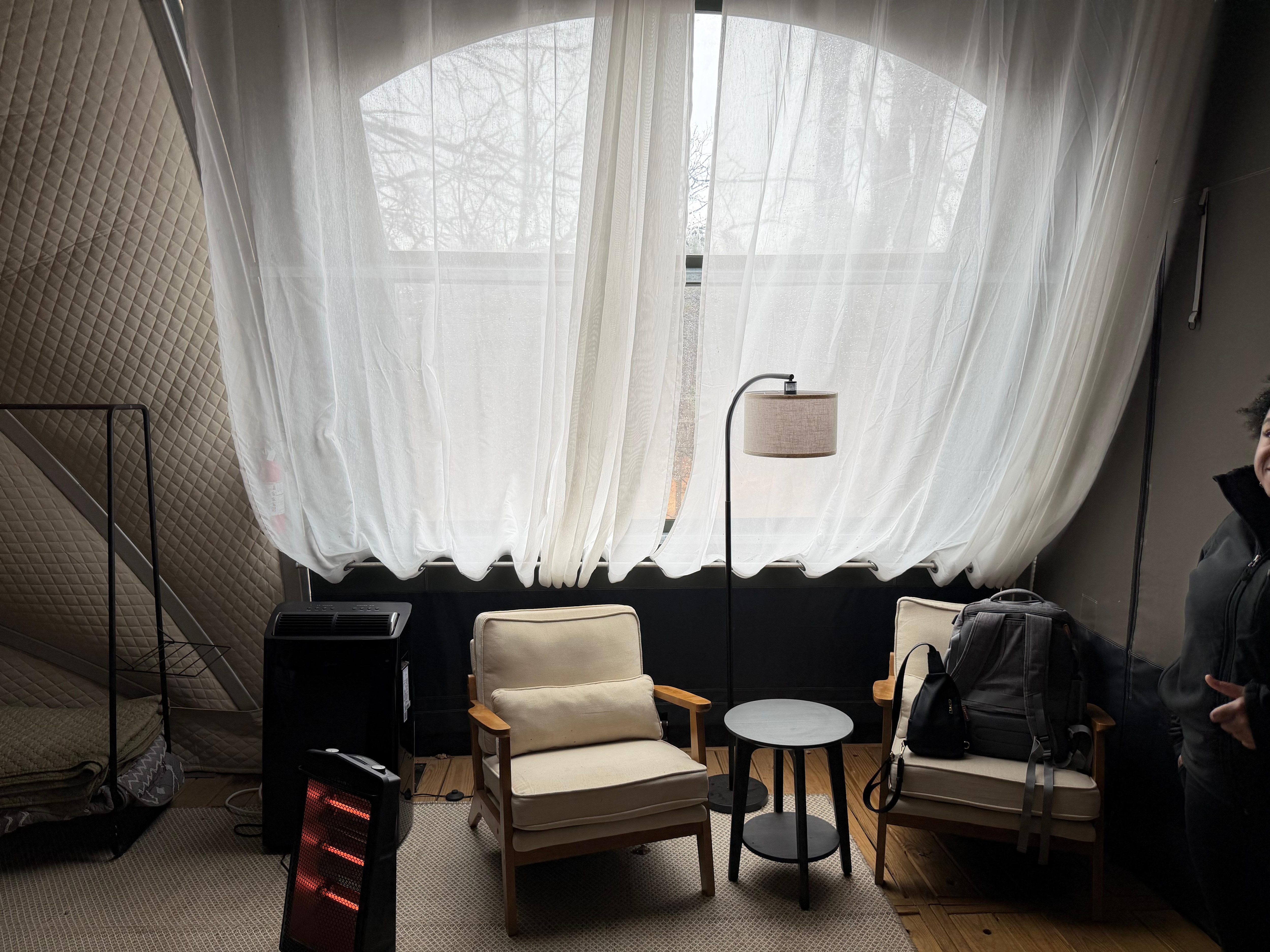 Inside the tent, you'll find a comfortable queen size bed, a mini fridge and kitchenette space, coffee maker, and AC, creating a cozy and welcoming space to unwind after a day of adventure. Whether you're traveling as a couple, with friends, or solo, this is a place to settle in, slow down, and truly reconnect.