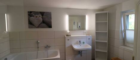 L'appartement est situïżœïżœïżœïżœïżœïżœïżœïżœ au 1. Ătage, et est d'environ 50 mĂštres carrĂ©s. Vous avez une chambre Ă coucher, une salle de bains avec douche et WC et une salle de sĂ©jour spacieuse avec salle Ă manger disponibles. Le salon dispose d'un confortable canapĂ©-lit double pour les 3e et 4e Personne Ă©quipĂ©e. Une tĂ©lĂ©vision par satellite et un systĂšme stĂ©rĂ©o sont Ă©galement fournis. La cuisine est entiĂšrement Ă©quipĂ©e avec lave-vaisselle et four. Pour nos jeunes hĂŽtes, nous avons fourni gratuitement un lit et une chaise haute. L'appartement est situĂ© au sud-ouest et a un porche intĂ©rieur avec des meubles de patio. L'appartement est carrelĂ©, la chambre est recouvert de moquette. Le centre-ville et la boulangerie est Ă environ 500m. Un grand handcart pour vos bagages et achats partie de l'appartement. L'appartement est un appartement non fumeur.