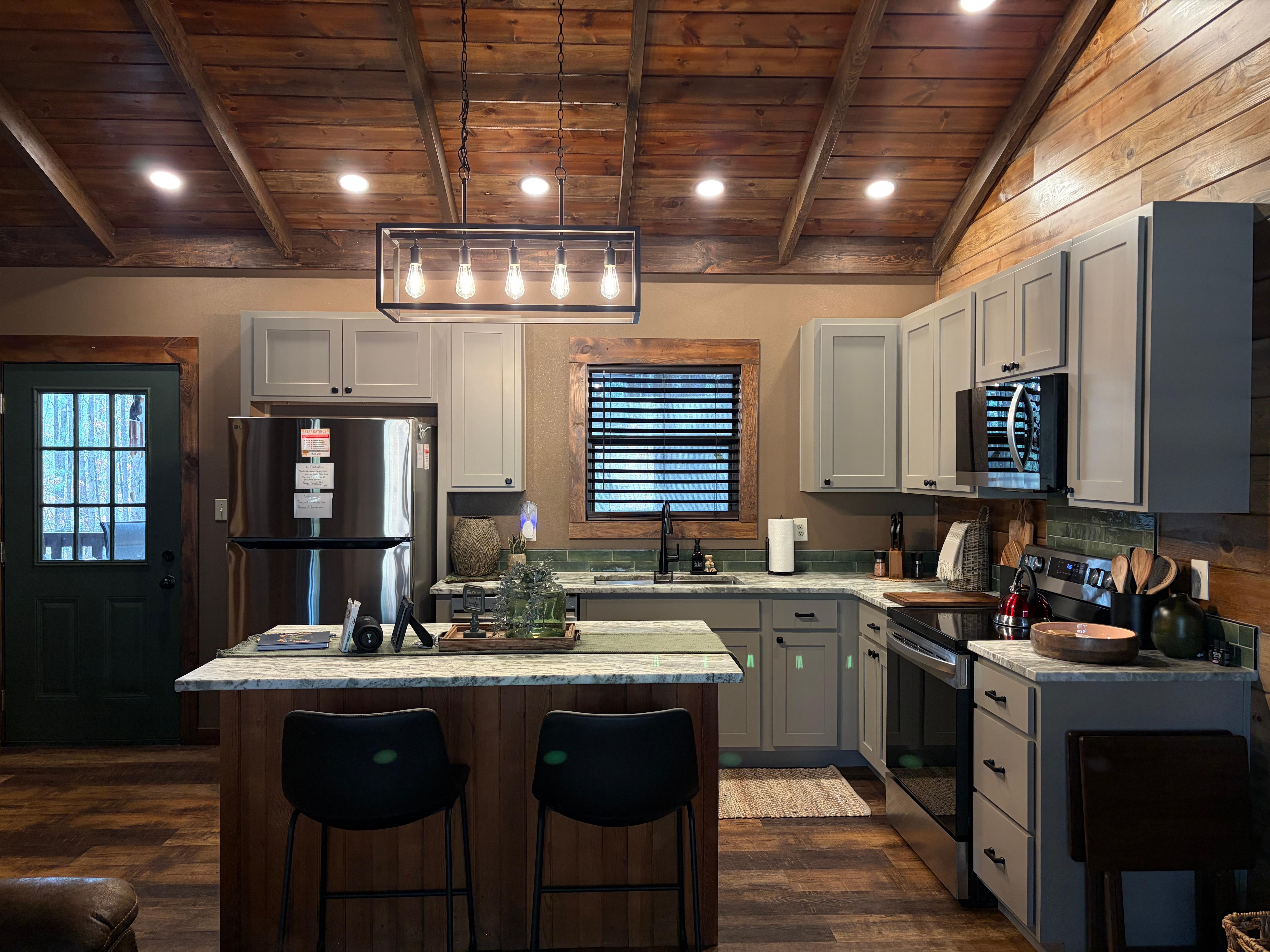 We loved our stay at Twisted Pine Cabin! Everything was so clean and beautifully decorated. Kitchen was stocked with everything you would need, including basic spices which was nice. Loved the coffee bar and all the extra snacks provided. Relaxing on the back deck around the fireplace or in the hot tub was our favorite. Will definitely be back!!