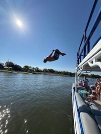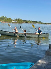 PrĂ©fĂšre les eaux profondes? Dirigez-vous dans l'autre direction. Les kayaks et les canoĂ«s peuvent vous accueillir dans les deux sens pour nager plus profondĂ©ment ou pour pĂȘcher. La riviĂšre a des profondeurs variant de 1 Ă 7 pieds! Le long du lac sâapprofondit jusquâĂ atteindre une hauteur de 5 Ă 6 mĂštres dans des zones situĂ©es Ă environ 100 Ă 200 mĂštres de notre quai. Environ 100 verges environ et il devient plus de 10-15 pieds lorsque vous entrez dans la partie principale du lac LBJ. (Voir ** Bateaux ** Ă la fin) Trois kayaks, un kayak double et un canoĂ« sont fournis sans frais supplĂ©mentaires.
