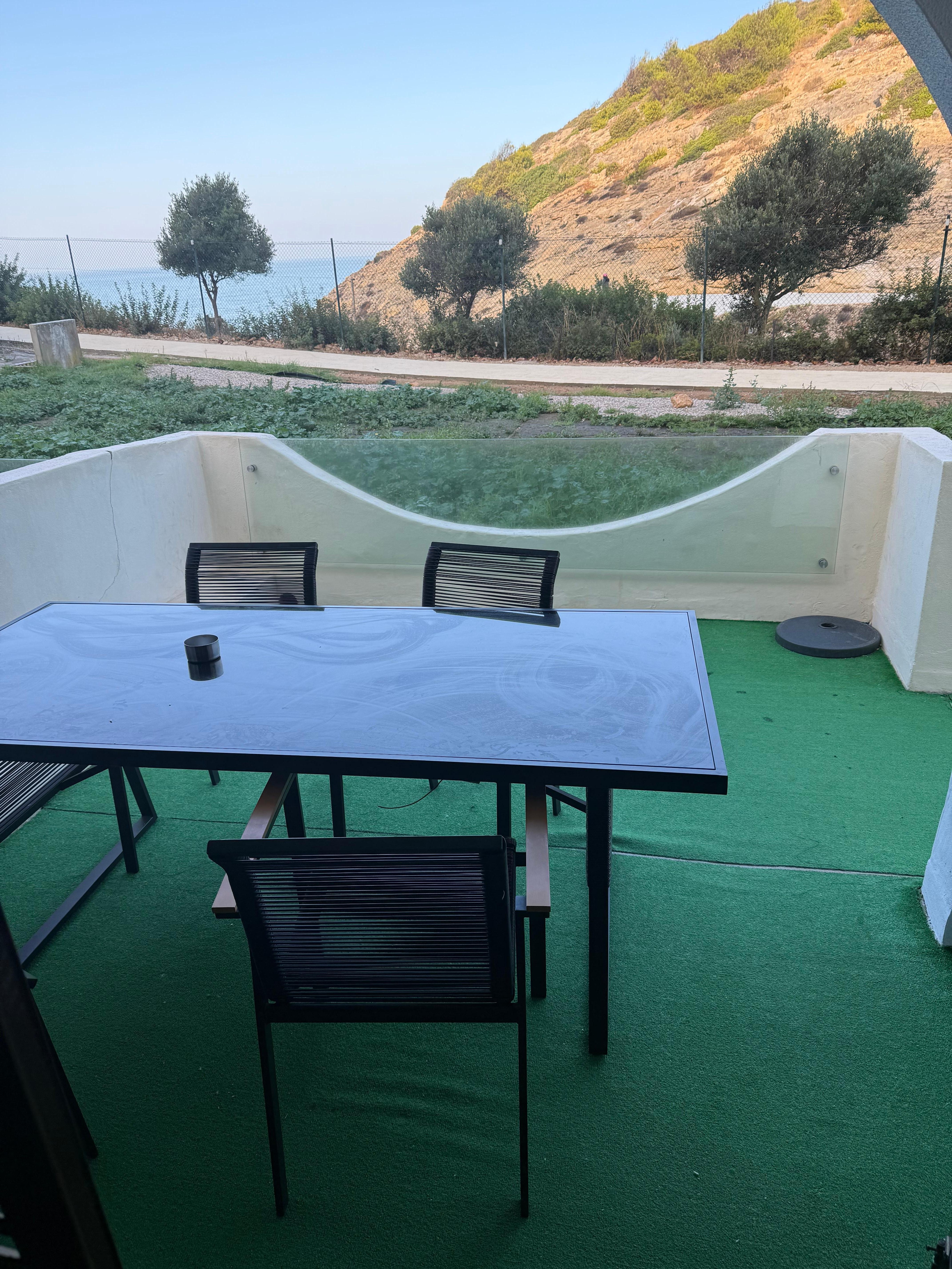 Il dispose de deux chambres (une en suite), 2 salles de bains, salon, cuisine et un grand balcon avec vue sur la mer et la plage.