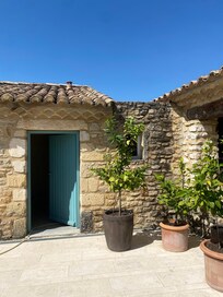 La patio offre une intimité totale et un équilibre parfait entre ouverture et sécurité. Le grand figuier et la fontaine donnent à cet endroit un charme médiéval.
