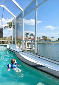 Enjoy Sunny warm days, lounging poolside at this home