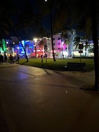 In the heart of South Beach, one block of Ocean Drive and the Beaches. Restaurants, Nightlife, Shopping.....everything is in the neighborhood at a walking distance!