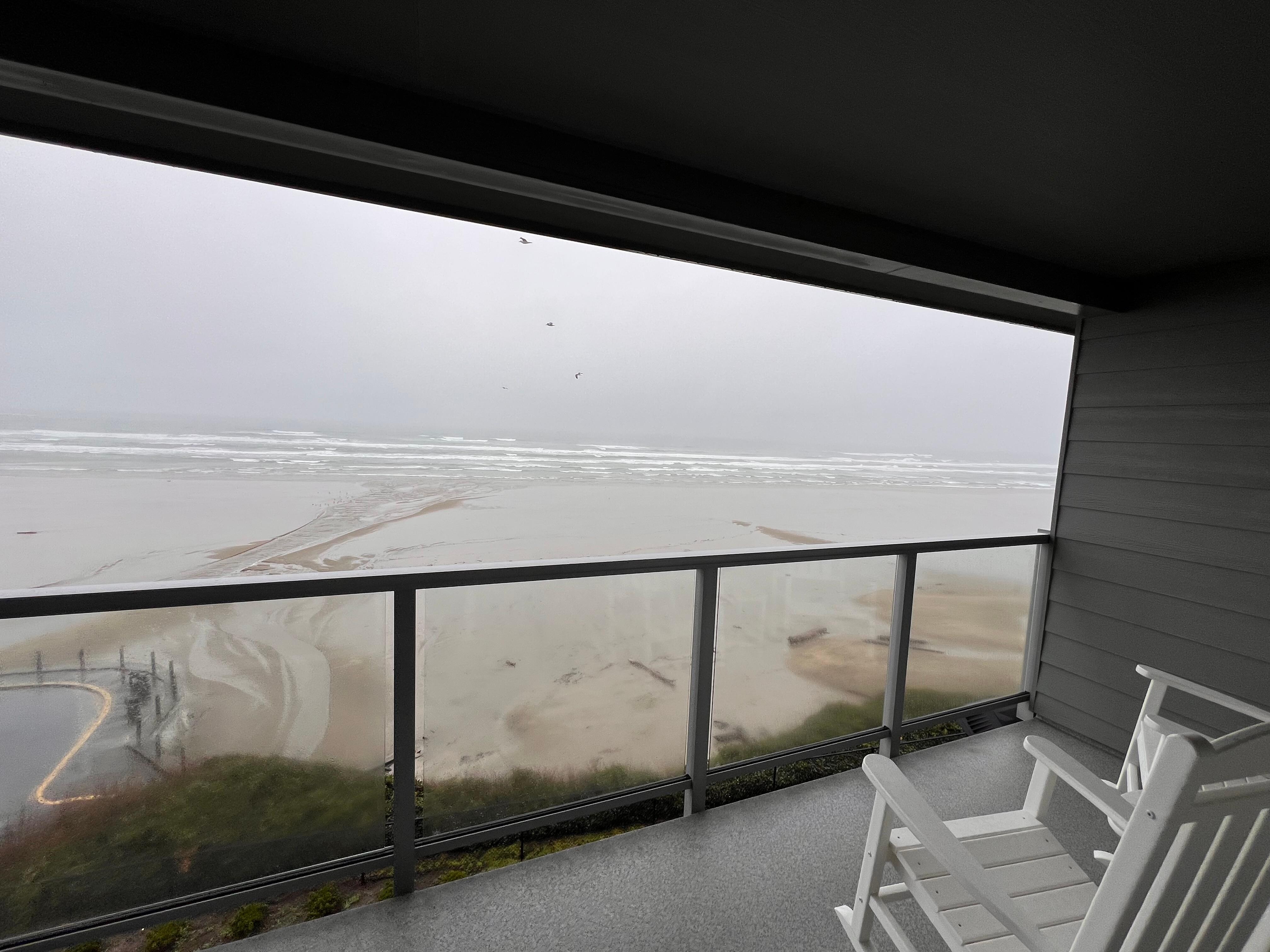 The open concept living and dining area is a perfect space to relax, read a good book, enjoy the view or put together a puzzle. A large desk is also provided for those that may want to work remotely but still get away! The tidy kitchen is fully furnished where you can either cook up a fantastic meal or order takeaway from many of the fabulous Nye Beach restaurants that are scattered throughout the neighborhood. There is one comfy bedroom on the main floor with a king bed and a full bath. Upstairs in the loft area is the second bedroom with a queen bed and attached bathroom. The view from the loft bedroom is one to enjoy - stunning sunsets and early morning glistening waves. Sit out on the balcony and sip one of your favorite beverages while you people, whale, and ocean watch - it's a perfect way to relax.