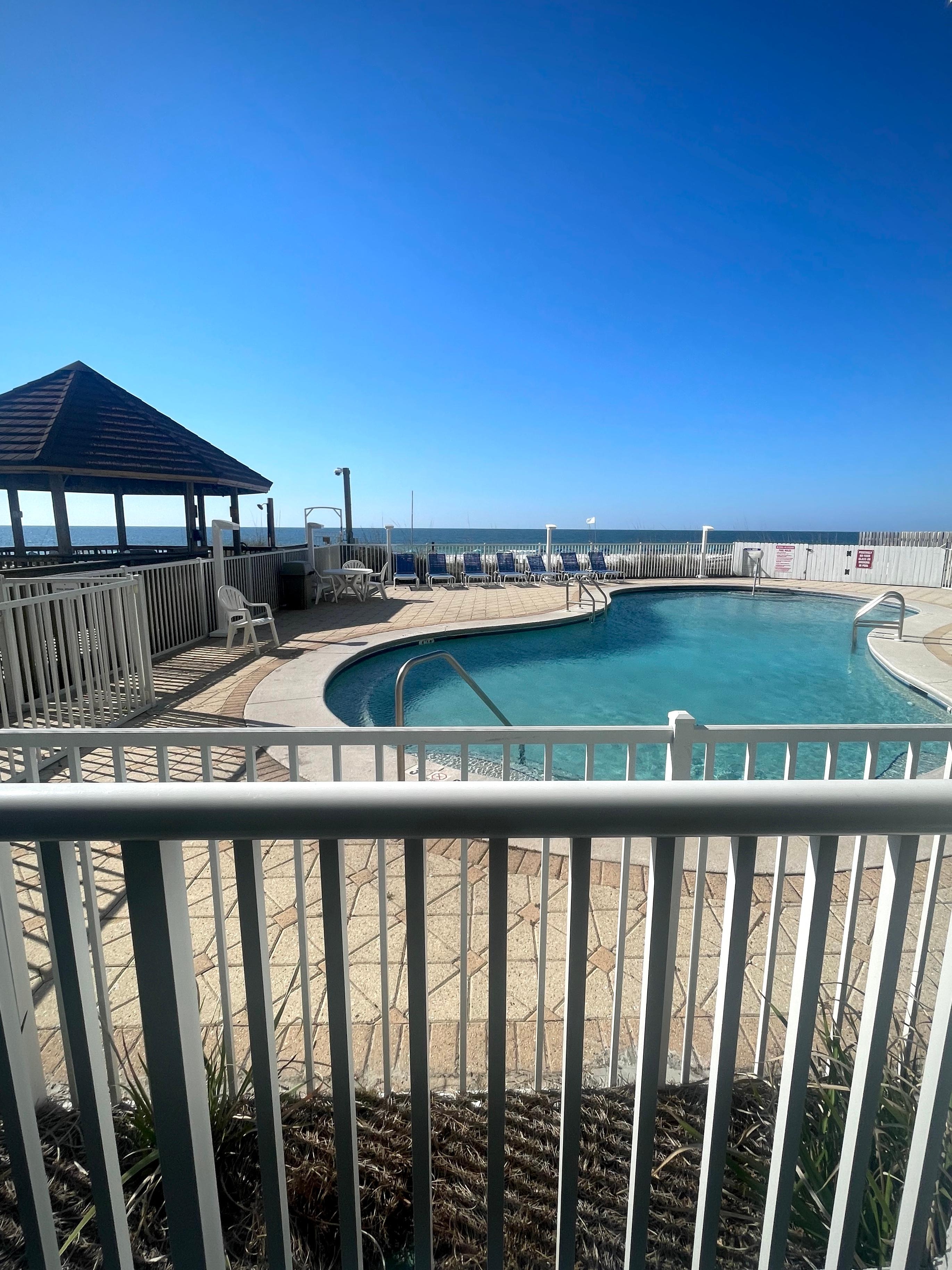 Condo spacieux de 1200 pieds carrés! Vue directe sur le golfe à quelques pas de la piscine et de la plage. Lorsque vous franchissez la porte d'entrée, vous avez une vue panoramique sur la magnifique plage d'eau et de sable blanc du golfe! Détendez-vous sur le grand patio et profitez d'un accÚs au rez-de-chaussée à la plage, à la piscine, aux barbecues et au parking. Le salon dispose de baies vitrées donnant sur le golfe.