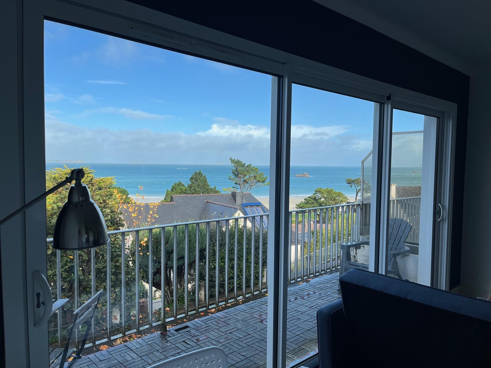 Pleine vue sur la cĂŽte de granit rose pour cette maison d'une capacitĂ© de 6 personnes entiĂšrement rĂ©novĂ©e et situĂ©e au cĆur de la station balnĂ©aire de Perros-Guirec sur la plage de Trestraou. La vue sur le paysage des 7 iles est imprenable.