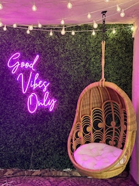Enjoy your private patio with comfortable outdoor seating and lovely pool viewsâa peaceful place to relax day or night.