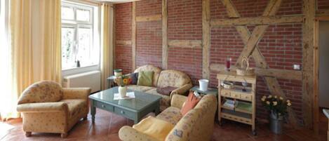 Notre maison solaire est recouverte de chaume et abrite 4 appartements pour 3 Ă max. 4 personnes par appartement disposant d'une terrasse ou d'un balcon. Le Sonnenhaus est situĂ© sur la propriĂ©tĂ© Ă cĂŽtĂ© de la ferme dans un endroit calme et idyllique. Pendant les mois les plus chauds, le petit-dĂ©jeuner peut ĂȘtre pris Ă l'extĂ©rieur. Un grill est Ă©galement Ă votre disposition. Vous pouvez louer des vĂ©los sur place. Nous sommes trĂšs favorables aux enfants, une grande aire de jeux est disponible pour nos petits invitĂ©s. Lit et chaise haute sont disponibles au besoin.