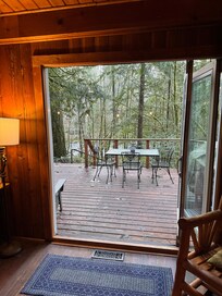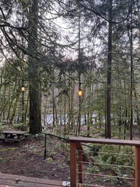 Sur le pont arriĂšre, vous trouverez un barbecue au gaz pour barbecue, mobilier de jardin, et un bain Ă remous privĂ© juste autour du coin. Avec une vue magnifique sur la forĂȘt, la riviĂšre, et mĂȘme un foyer bas prĂšs de l'eau, cette retraite est idĂ©al pour les membres du groupe de tous les Ăąges! De plus, pour 10 $ par animal / par jour (et Ă 40 $ minimum), vous pouvez apporter votre chien de courir dans la cour.