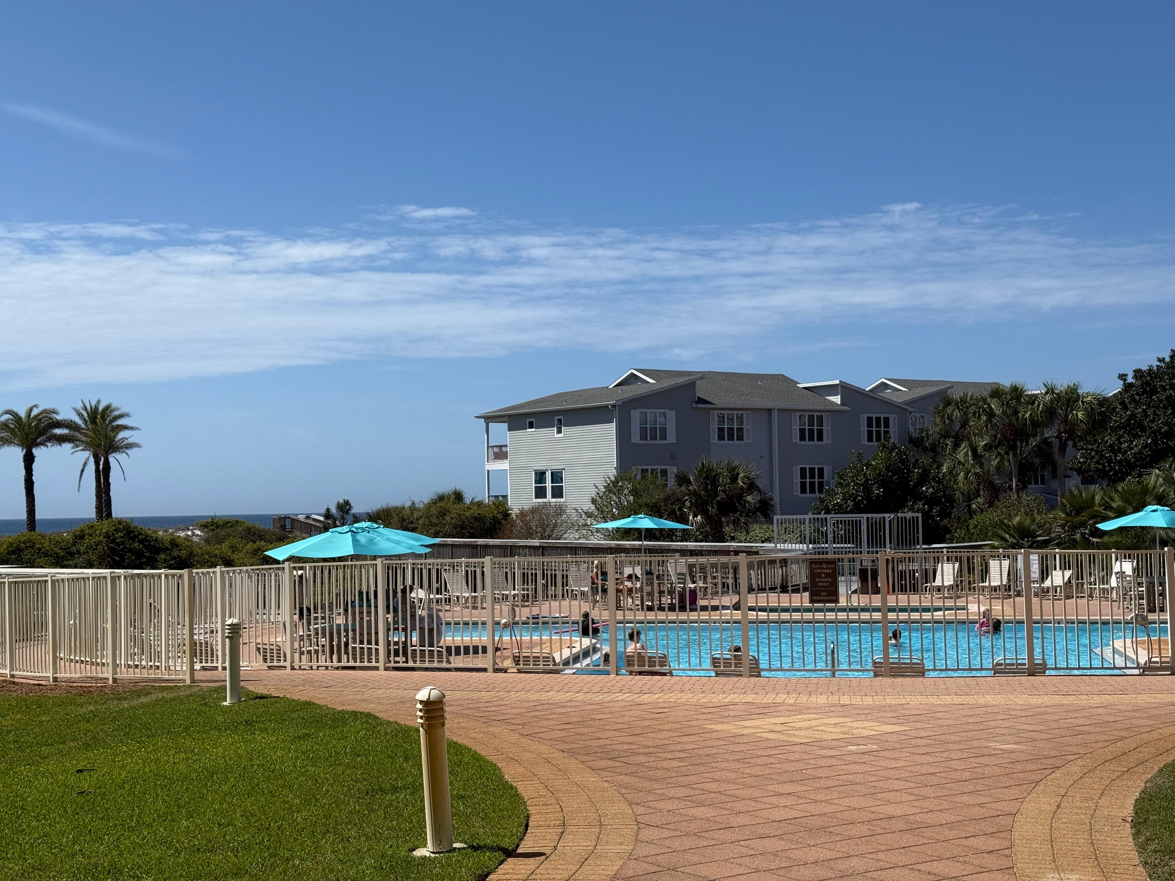 San Remo is a gated community with bike & walking sidewalks that run the length of 30-a. There is a covered lobby drive thru with luggage racks and plenty of parking.