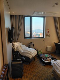 Being in the center of the club street of Itaewon, I knew it would be noisy at night, so that was not a concern for me, but if you are sensitive to that, it's good to know. There are earplugs in the room when you arrive. The room was clean, especially the bathroom, and had a lot of space. They provided amenities like a toothbrush, toothpaste, rasor, etc. in the room when I arrived and it was good quality. The bed was quite hard though, so it took me two nights to get used to it. It was my major concern with comfort. I had a nice view on Namsan tower from my room. Know that even as a hotel guest, you have to pay to use the pool. I'm a female solo traveler, and I felt safe, but it was also a general feeling everywhere in Seoul, not just at the hotel. I love all the food options around, and being able to go out clubbing and not having to commute after, even if I never go out at home! Was a fun experience. Also, the Subway station is right in front of the hotel, which is great, and Hannam is a nice shopping neighborhood nearby where you can even walk if you want to. The staff wasn't especially friendly, but I didn't need anything either, so I can't complain on that.