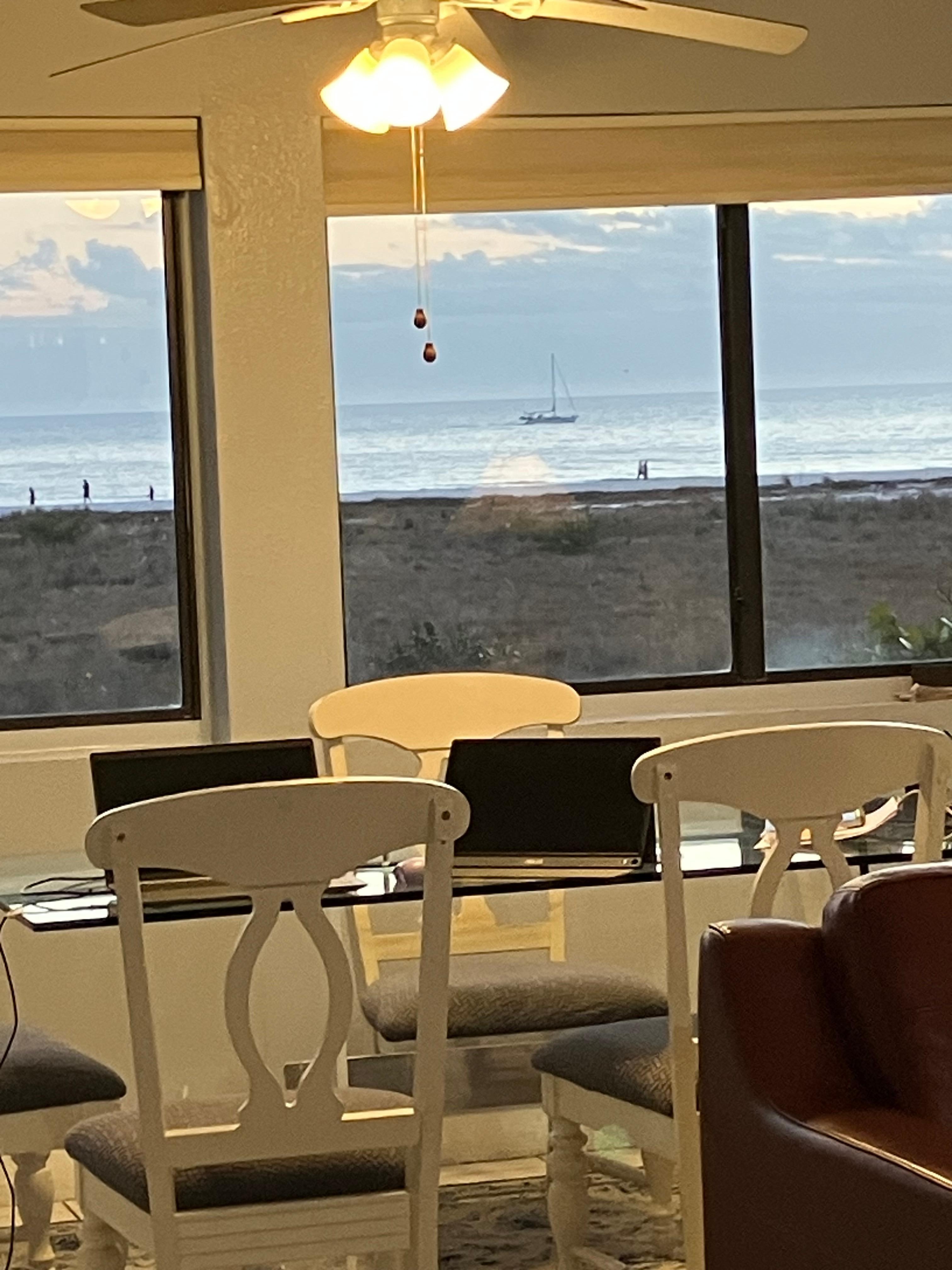 The fully equipped kitchen is adjacent to the family room. There is a 4 seat dining table in the kitchen, a screened in balcony right off the kitchen with seating for 2, and a large formal dining table on the other side of the family room with incredible ocean views. With plenty of dining areas, you'll look forward to relaxing and taking in the views while you eat.