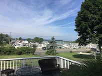 Overlooks harbor.