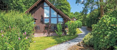 Available to book with two other properties on-site, this lodge is extremely well appointed and spacious and the quality inside is not the norm expected from a holiday lodge. This is the perfect location for families or friends looking for a peaceful retreat for a holiday or celebrating a special occasion and the perfect spot for those looking to explore the wider surrounding area. Inside youâll find three bedrooms, a king size and a bunk room on the ground floor, and a lovely gallery-style kingsize (but with a door and glazing) with en-suite shower room on the first floor that overlooks the open plan living areas downstairs. The lounge area has a smart TV, cosy wood burner, bluetooth speakers in the ceiling and bi-fold patio doors leading out onto the decking with countryside views, and the kitchen area has all youâll need for your stay including a washing machine, dishwasher and large retro style fridge/freezer, plus additional patio doors leading out to the side decking area where youâll find a table and chairs perfect for a peaceful summerâs breakfast with those amazing views. Ample private parking is available just by the lodge which is accessed by a meandering tree-lined driveway.