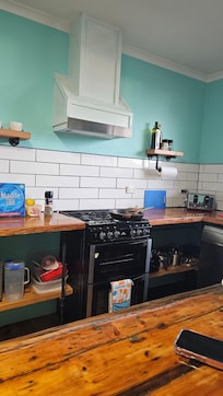 Cuisine entiÚrement équipée - avec grand réfrigérateur et cuisiniÚre à gaz, lave-vaisselle, micro-ondes, grille-pain, bouilloire électrique, grille-pain, cafetiÚre, beaucoup d'ustensiles de cuisine, vaisselle de qualité et couverts assez pour 8 plastiques plus pour notre porte. Chaise haute disponible. Thé, café et une variété de tisanes.