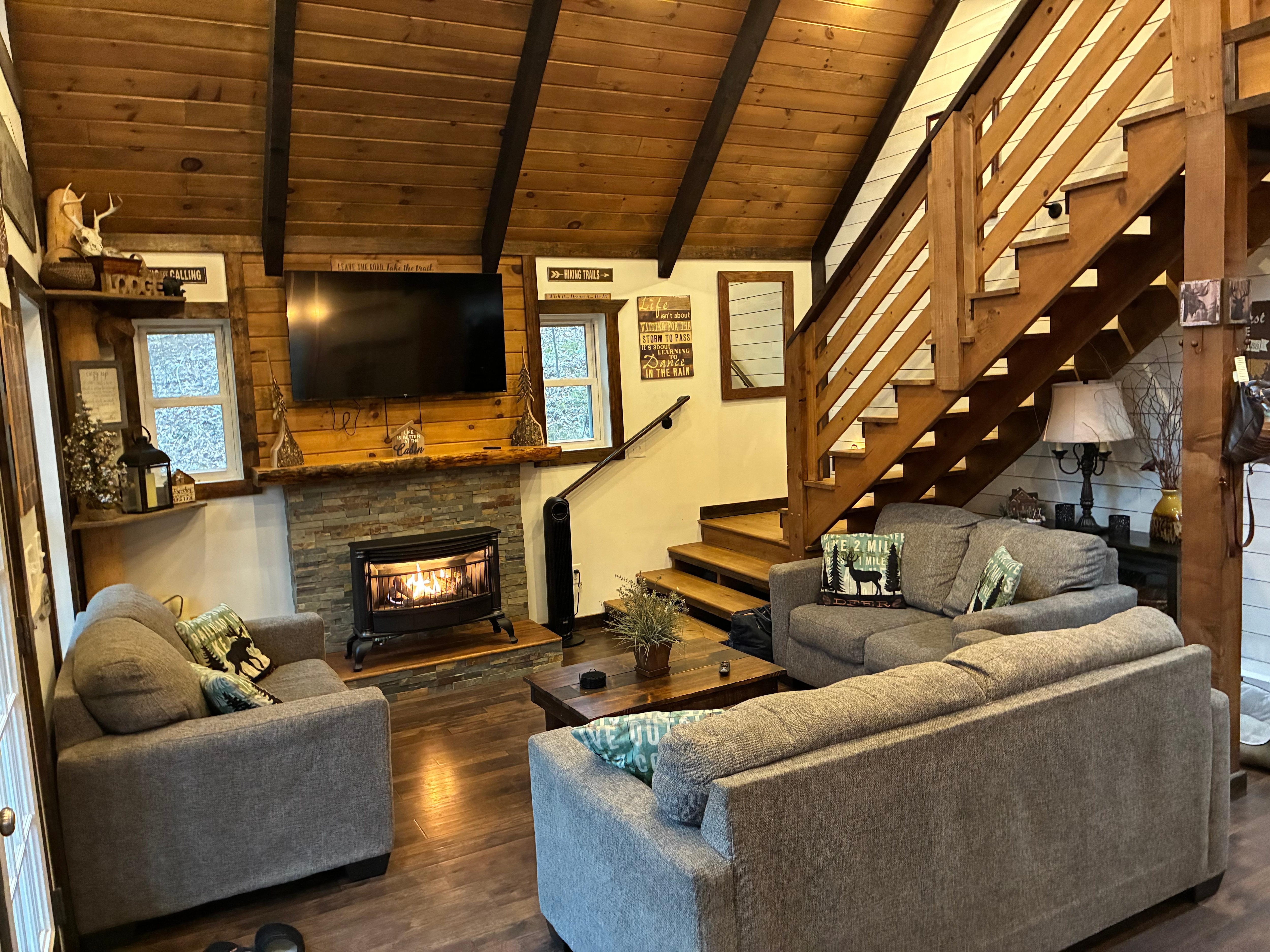 Sugar Tree Lodge est l'endroit idĂ©al pour passer les lunes de miel, les anniversaires et cĂ©lĂ©brer les anniversaires. Le lodge est parfait pour deux personnes Ă la recherche d'une escapade isolĂ©e et romantique ou pour les familles Ă©largies pour se rĂ©unir et cĂ©lĂ©brer les vacances. un foyer extĂ©rieur, construit avec des tables de pique-nique, des balançoires et des chaises Ă bascule. Profitez du plein air de l'intĂ©rieur avec les immenses fenĂȘtres et portes-fenĂȘtres ou asseyez-vous sur le porche et admirez la vue panoramique.