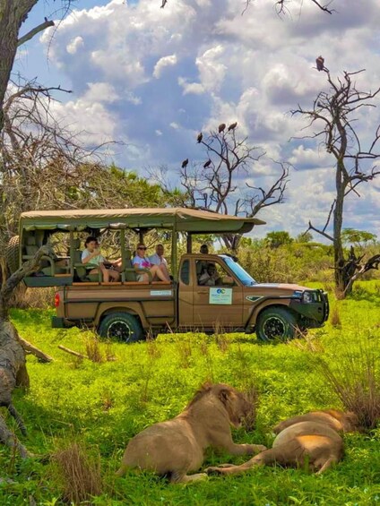 Le troisième jour, vous serez pris en charge tôt le matin par notre chauffeur, qui vous conduira à l'aéroport de Zanzibar. De là, vous prendrez un court vol en plein milieu de l'environnement riche en gibier de la réserve de Selous et du parc national de Nyerere. Ce jour-là, vous profiterez d'un safari à pied guidé et d'un safari en bateau sur la rivière Rufiji.